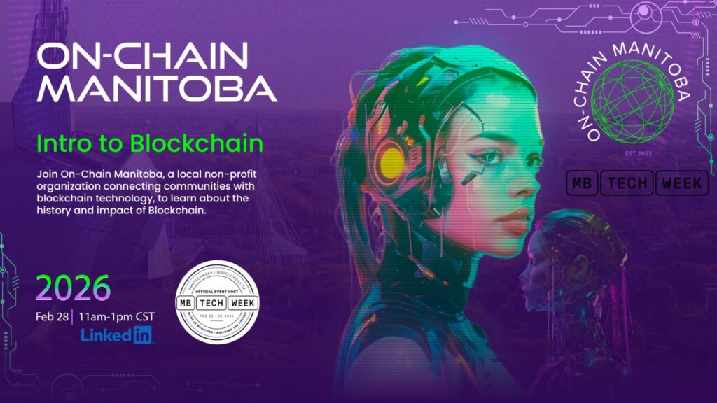 On-Chain Manitoba is a registered non-profit with the goal of connecting communities with blockchain technology, and this event aims to promote the benefits of blockchain for companies, artists and entrepreneurs across the province.