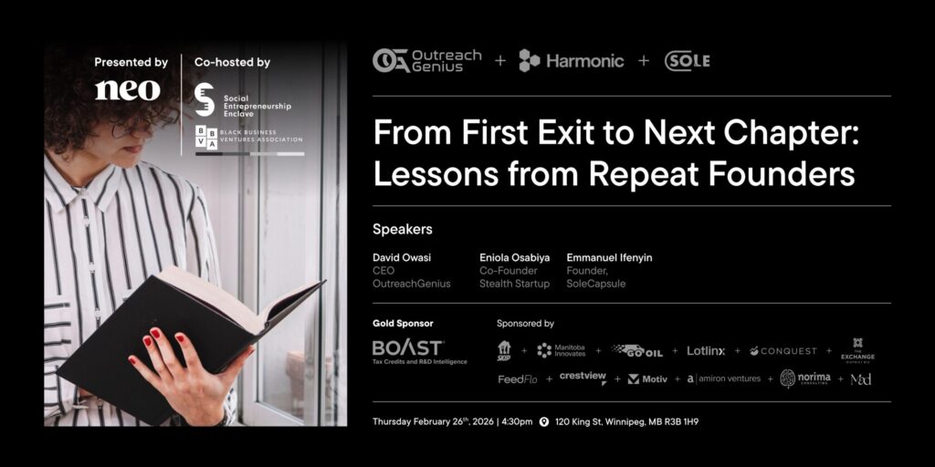 Black Business Ventures Association is Proud to Partner with Social Entrepreneurship Enclave, Manitoba Innovates and Tech Thursday to host a dynamic Panel Session Led by Black Founders sharing hard-earned insights from building, exiting, and launching again.