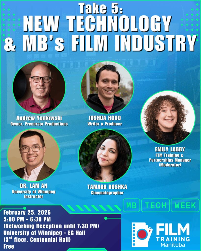 This dynamic panel session will dive into the cutting-edge technological innovations, such as Artificial Intelligence and how it’s transforming the film industry and what they mean for Manitoba’s own creative landscape.